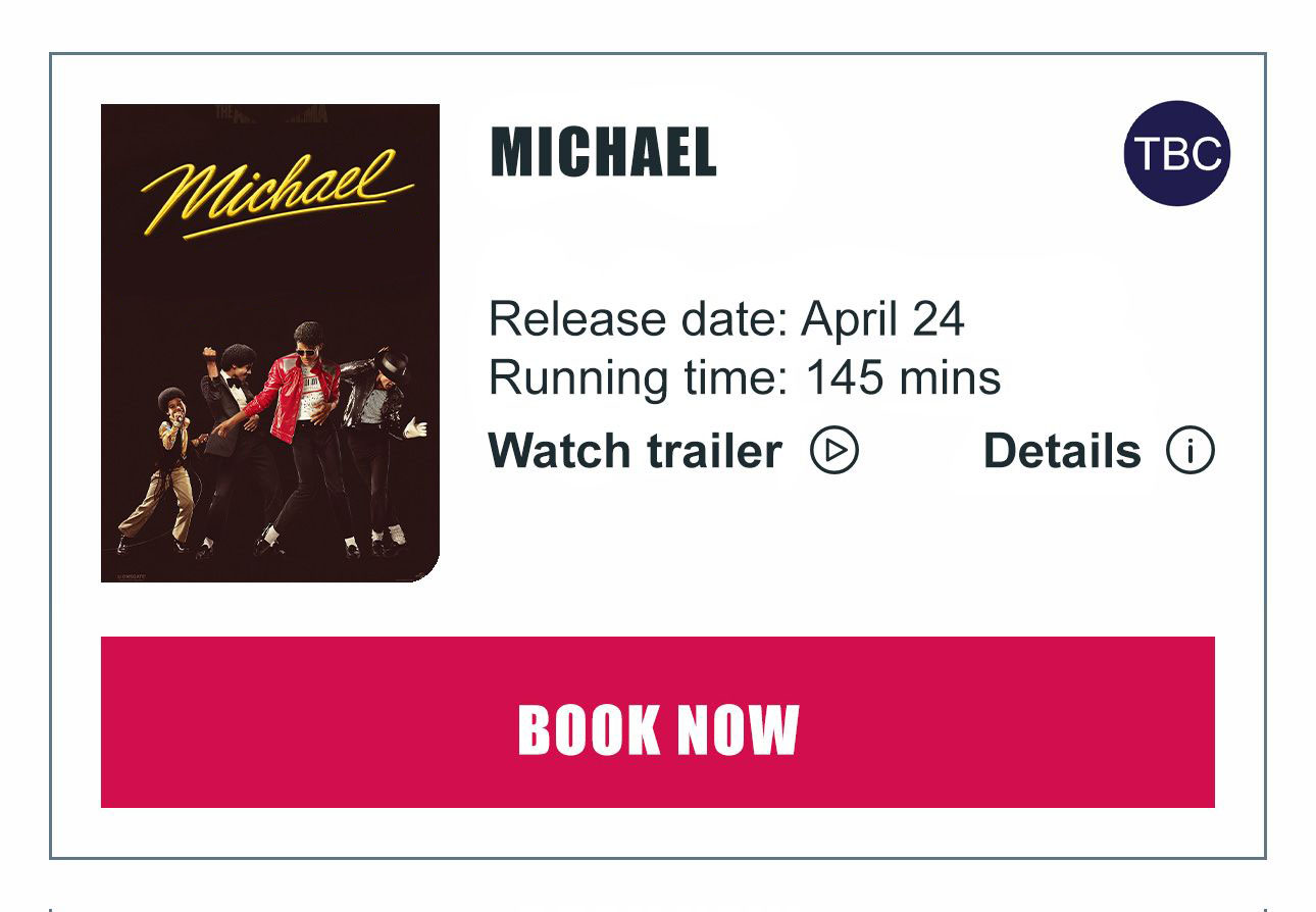The Arc Cinema is proud to present Micheal, a powerful new drama celebrating the life, legacy, and artistry of one of the most iconic performers in music history. This is a must-see big screen experience, filled with emotion, energy, and unforgettable moments.